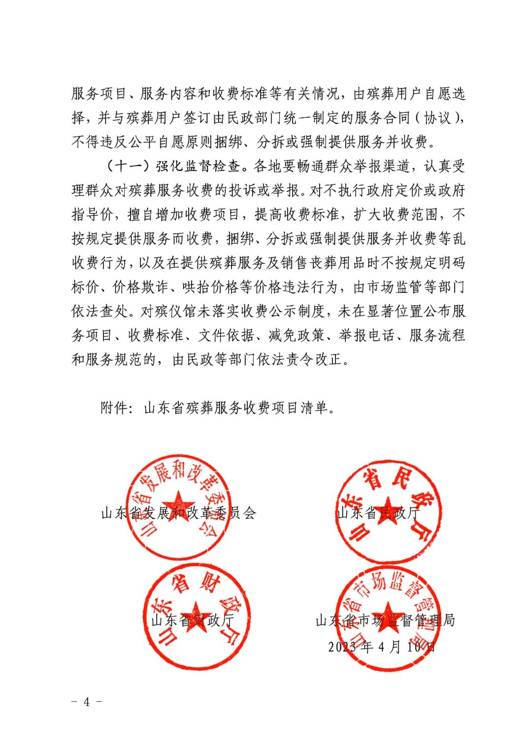 日前,山东省发展改革委等四部门联合印发《关于进一步加强殡葬服务收费管理的通知》(鲁发改价格〔2023〕235号,全文见下文),对殡葬服务实行收费项目清单管理,对具备相应资质的殡葬服务或经营单位应严格按照《山东省殡葬服务收费项目清单》所列服务项目、服务内容及备注规定的不同情形,开展殡葬服务活动并收取费用。
